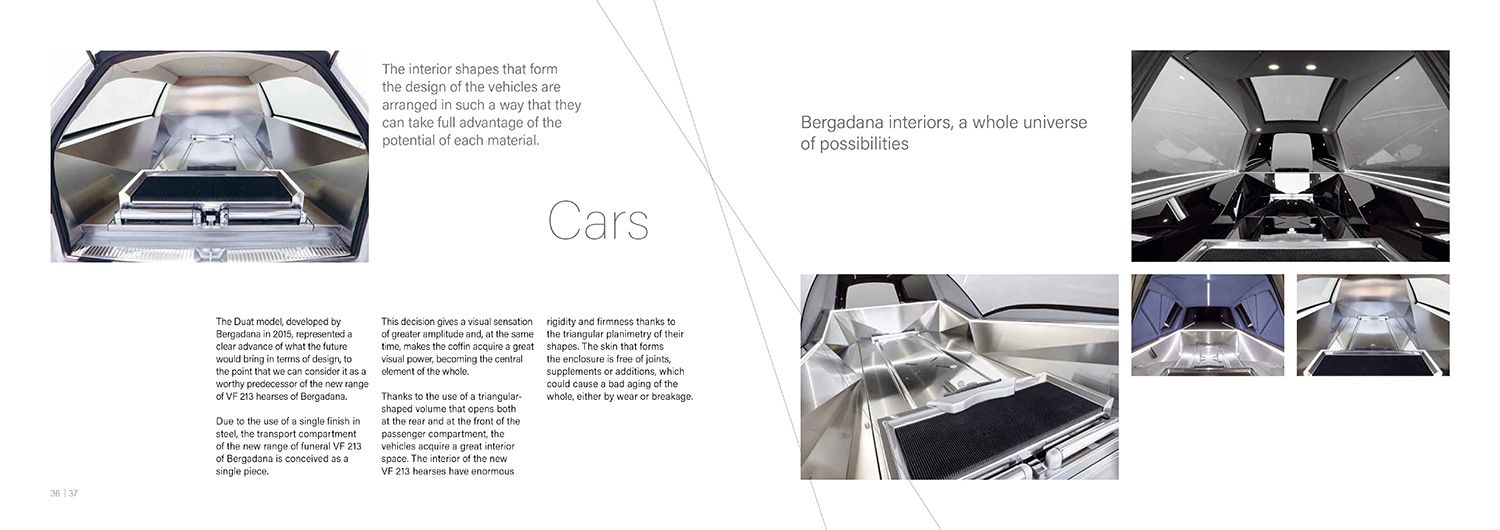 Disseny i maquetació del catàleg de vehicles funeraris de l'empresa Bergadana per al 2018, en el qual es presentaven les novetats de disseny sobre la flota de vehicles de l'empresa. Una eina per a l'equip comercial de la marca de transformació de vehicles.