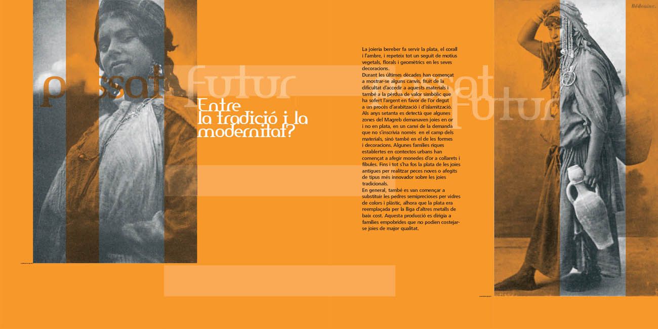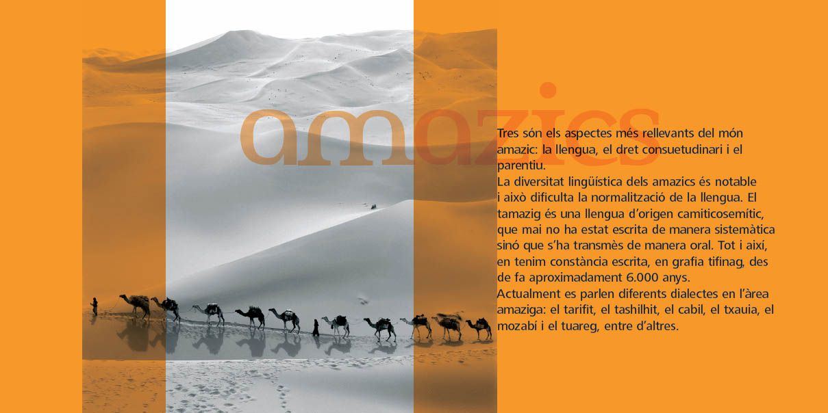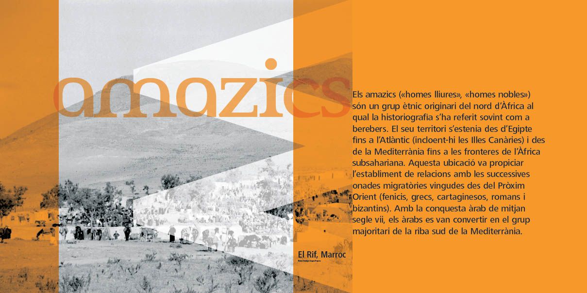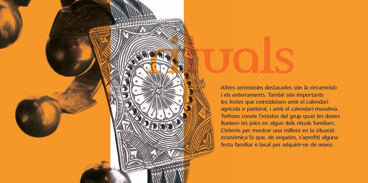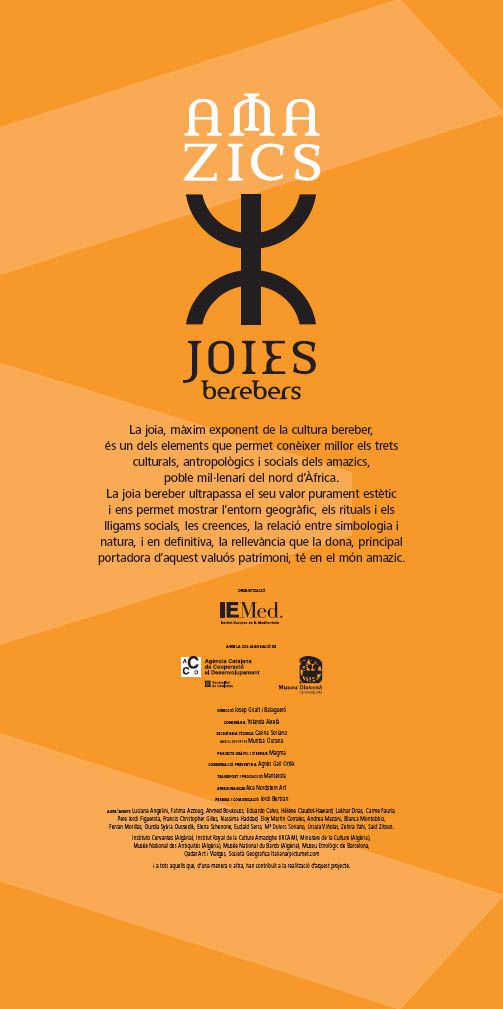 Desenvolupament d’un sistema gràfic de suport a l’exposició “Amazics. Joies berebers”. El sistema inclou una imatge base, que s’aplica tant al projecte museogràfic en si i a la corresponent senyalització, com a tot el conjunt de peces de comunicació (fullets, anuncis, catàleg...).