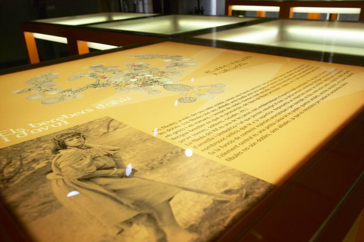 Disseny i realització del projecte museogràfic de l’exposició “Amazics. Joies berebers”, composat per estructures autoportants i amb il·luminació inclosa, aptes per exposar el conjunt de les voluminoses joies ètniques, mitjançant geometries senzilles i contundents. En paral·lel, es va desenvolupar un sistema a joc de panells translúcids, aprofitant la llum exterior, com a suport de tot el contingut descriptiu.