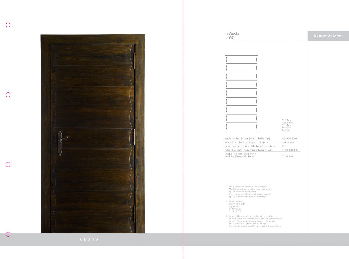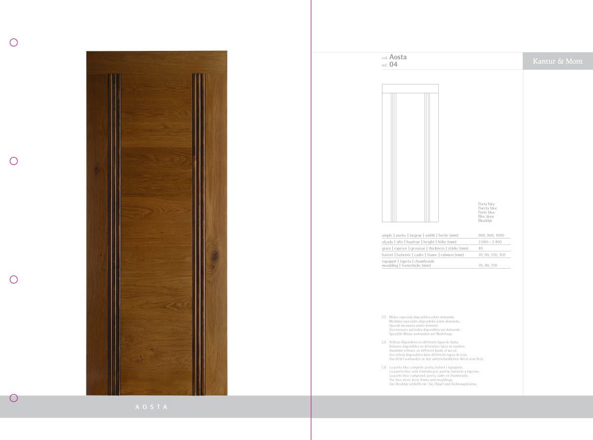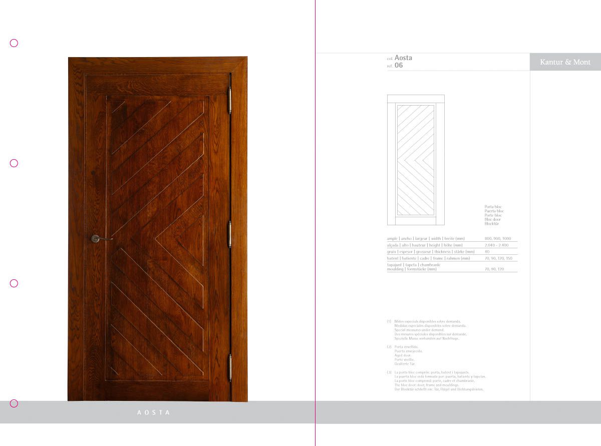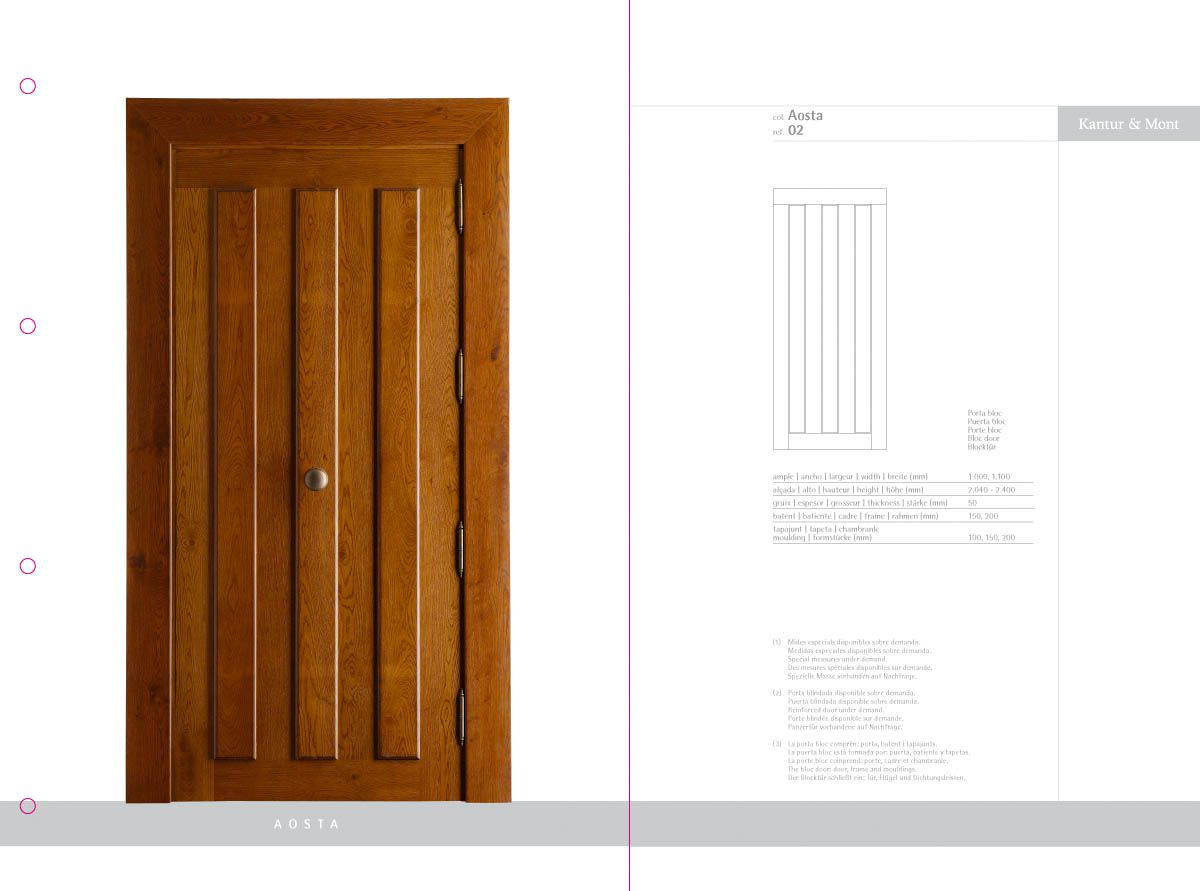 Desenvolupament d’un catàleg de producte com a eina comercial i mostrari de producte, a partir de la idea creativa original i la seva implementació en format de fitxes incloses en una carpeta d'anelles per a properes incorporacions de noves referències. El treball inclou la fotografia de les portes i detalls de producte.
