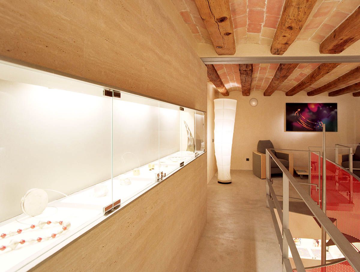 Interiorisme altament personalitzat per a un punt de venda de joieria d’autor al casc antic de Manresa, amb una elevada exigència d’imatge, rigor de disseny i qualitat en la realització. El projecte s’insereix dins del procés de rehabilitació de l’edifici sencer.