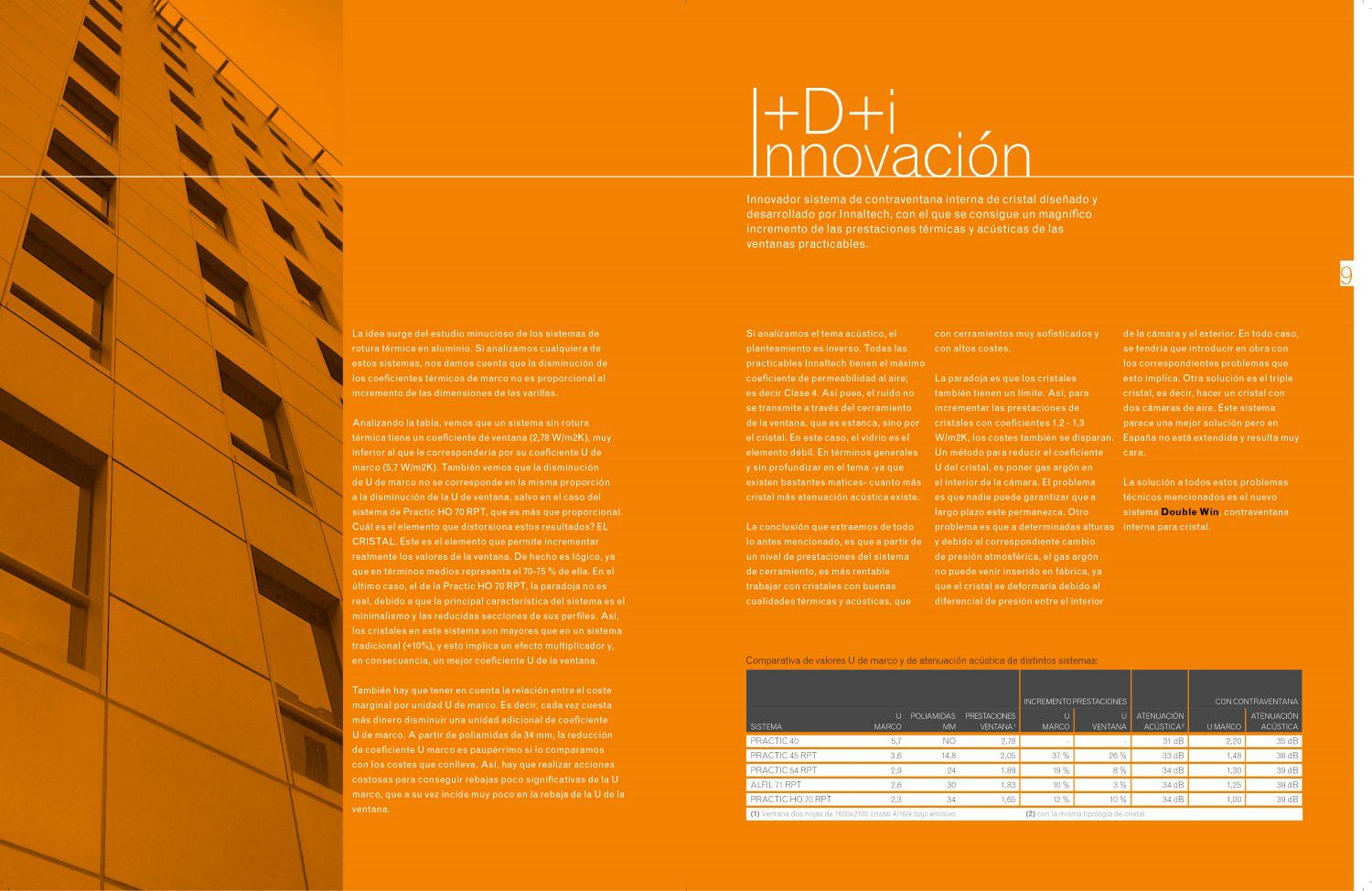 Catálogo de producto como herramienta comercial de la empresa Innaltech, perfilería de aluminio, en el que el producto se han estructurado en pequeñas fichas, por lo que fácilmente se puede comparar y seleccionar el producto deseado.