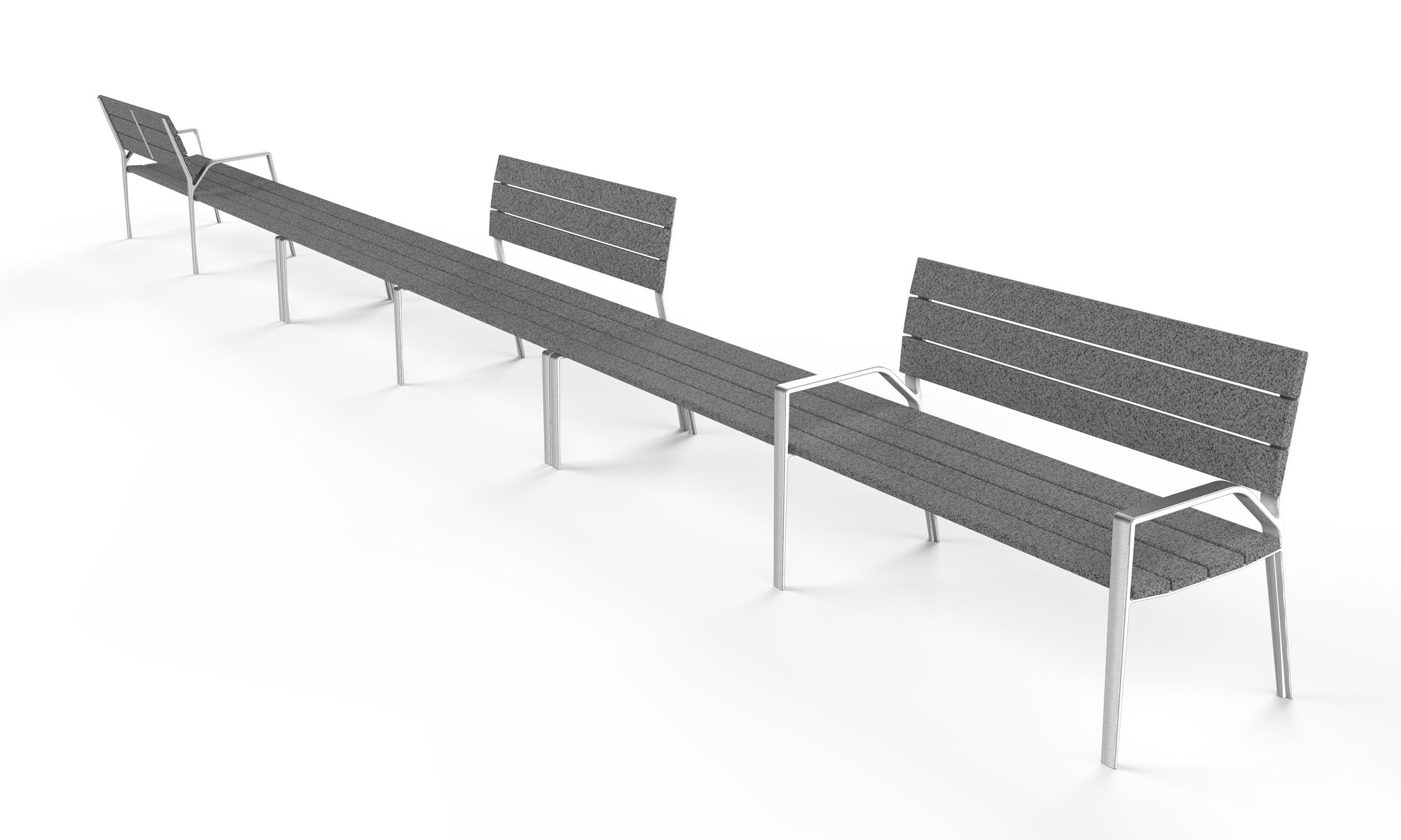 El resultado es una pieza modular, que permite realizar un banco más o menos largo según las necesidades y, al mismo tiempo, un mobiliario urbano comprometido con el respeto al medio ambiente.