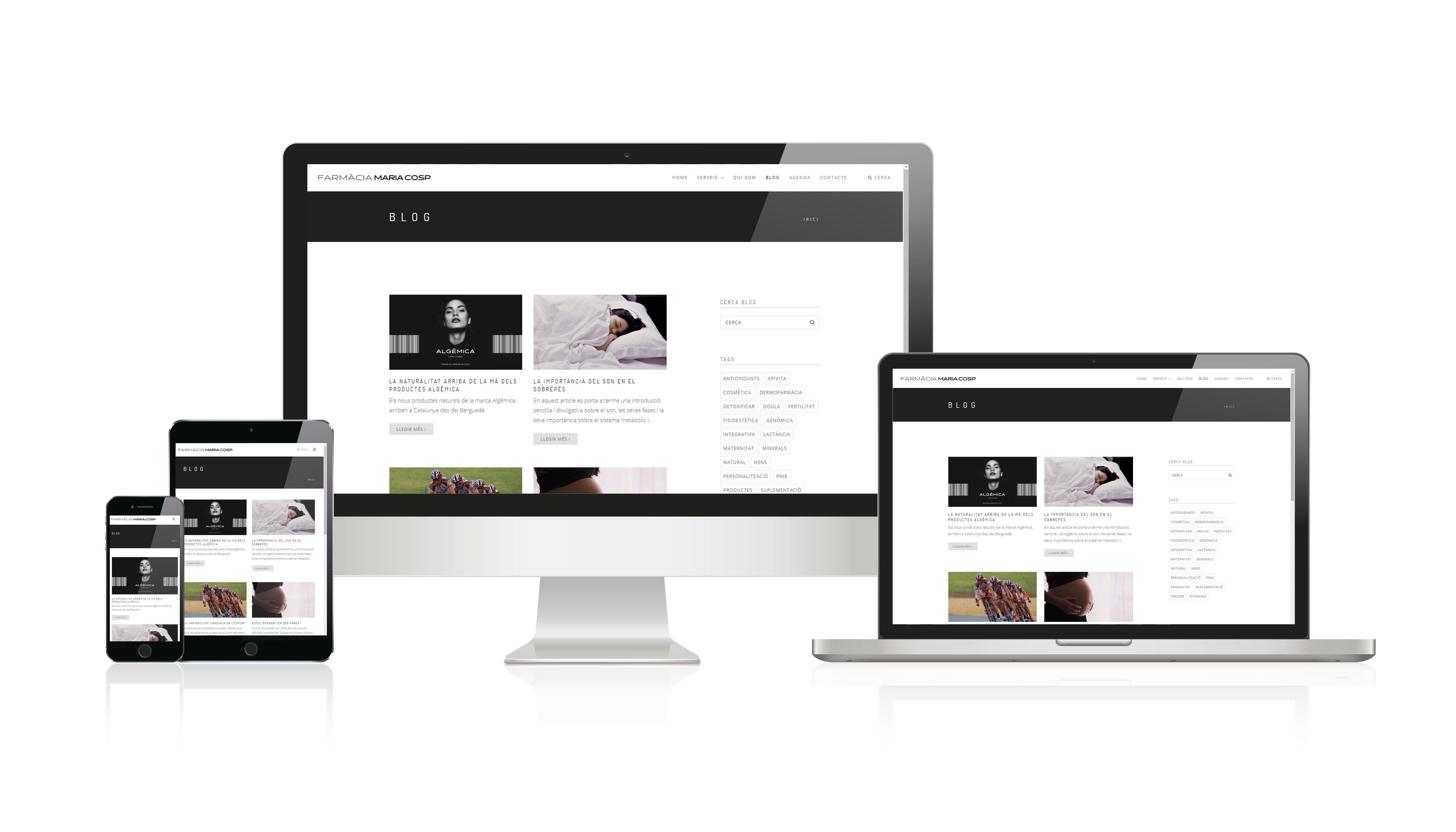 Actual e innovadora web para una farmacia de nuevo concepto basado en la visión integrativa de la persona, una percepción que engloba diversos conocimientos del mundo de la salud.
