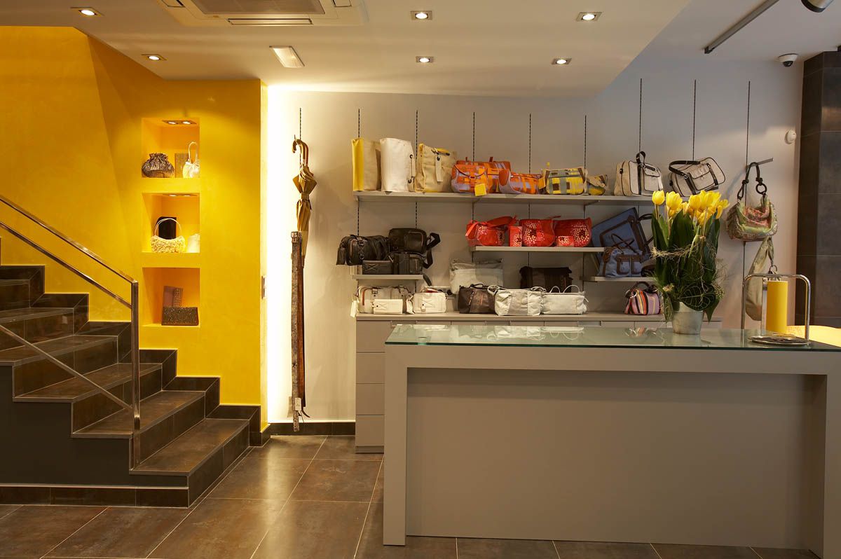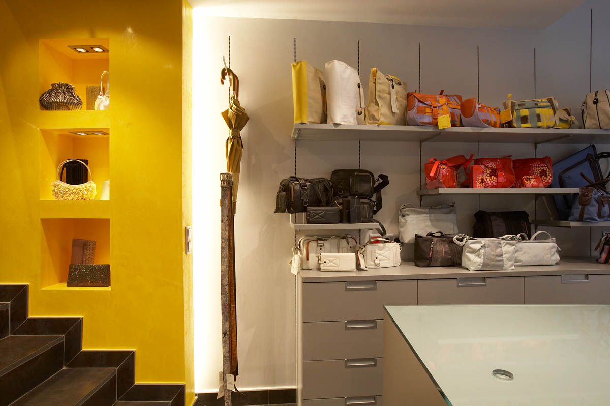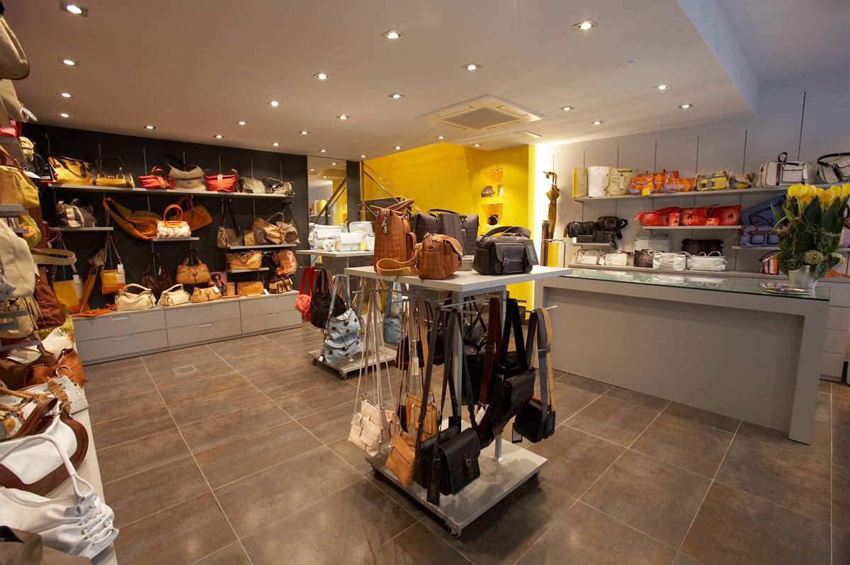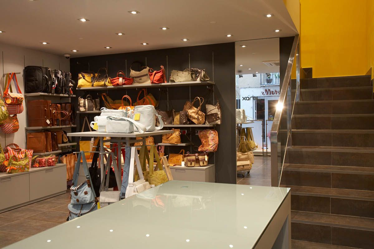 Interiorismo para un punto de venta de bolsos y complementos en el casco antiguo de Berga, con una elevada exigencia de movilidad en la exposición del producto, rigor de diseño y calidad en la realización. El proyecto se desarrolla en un local de dos plantas.